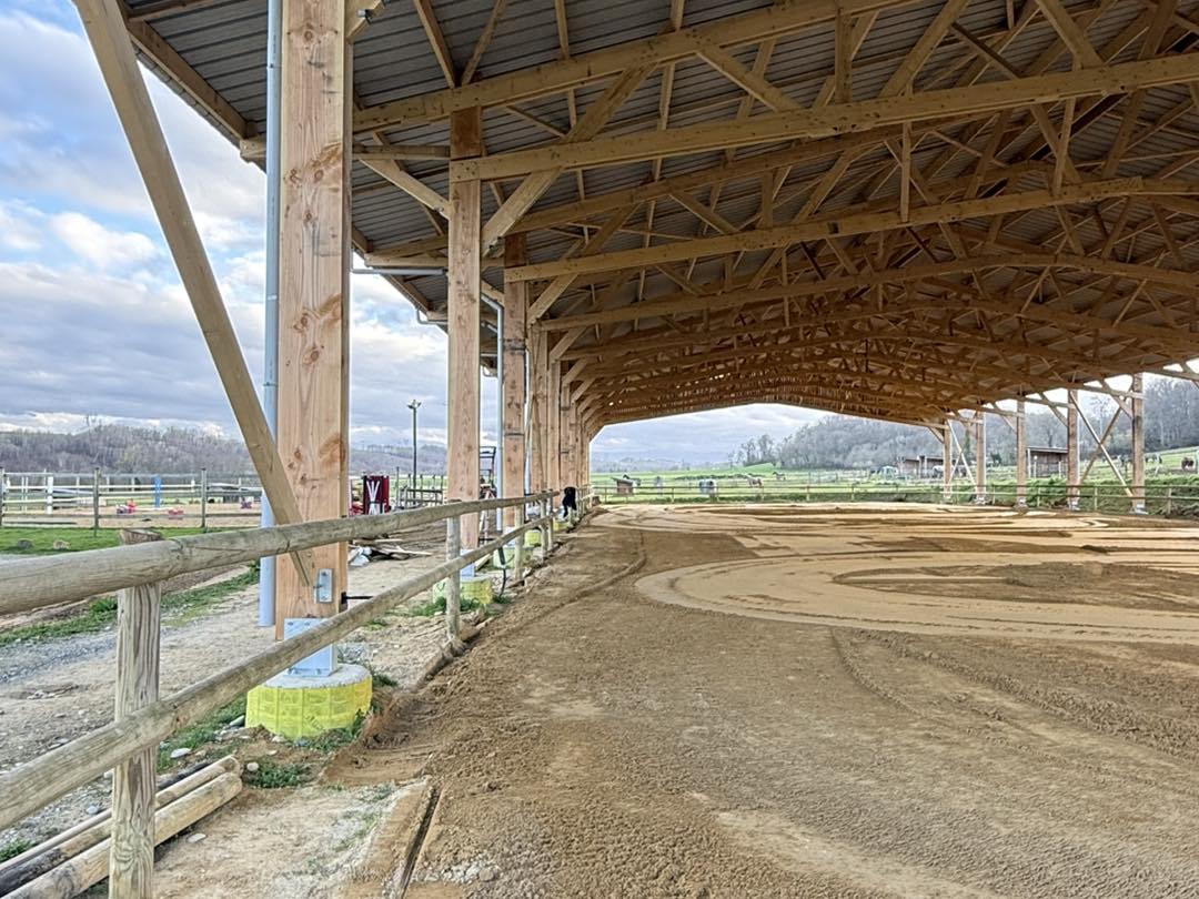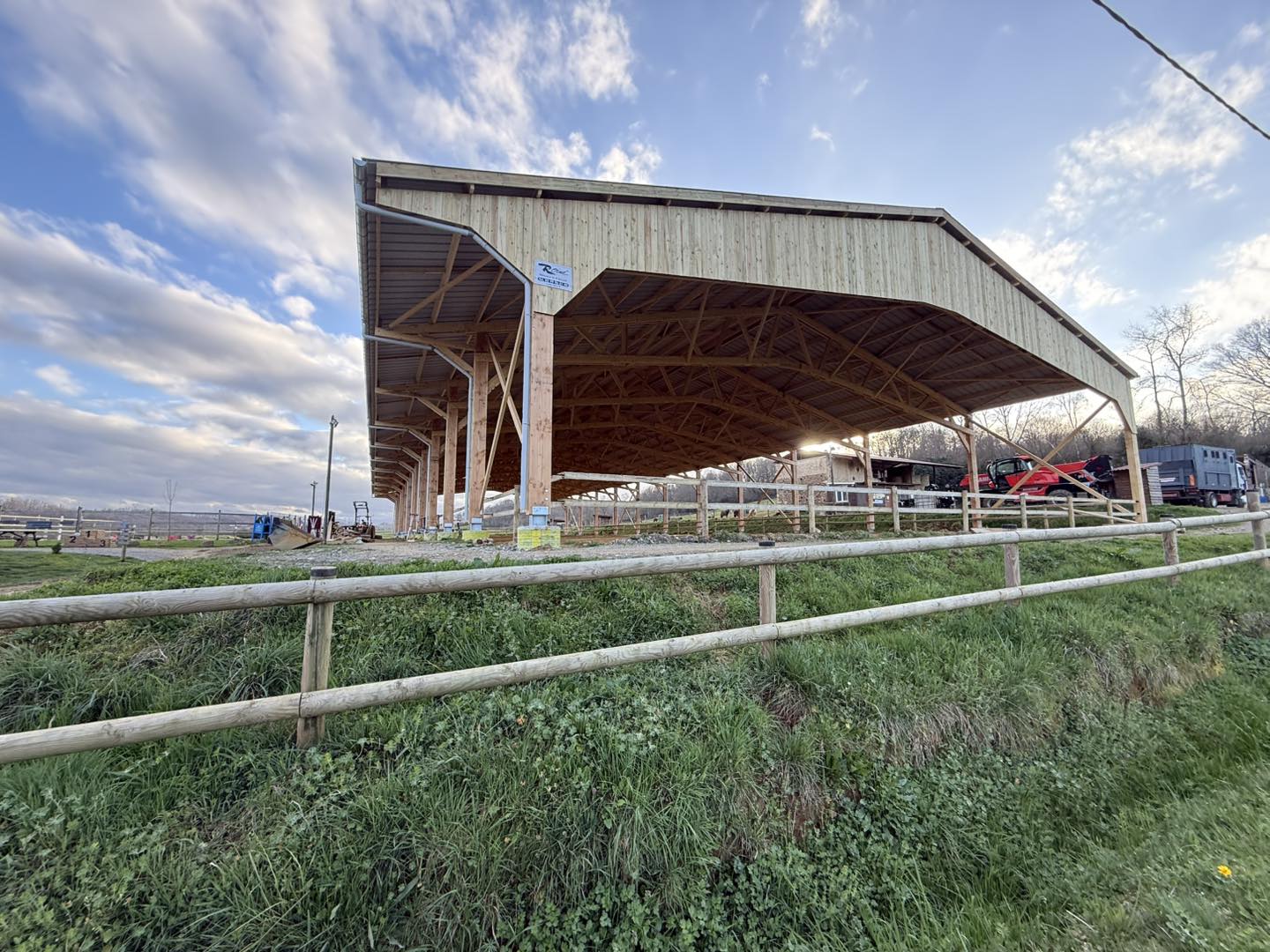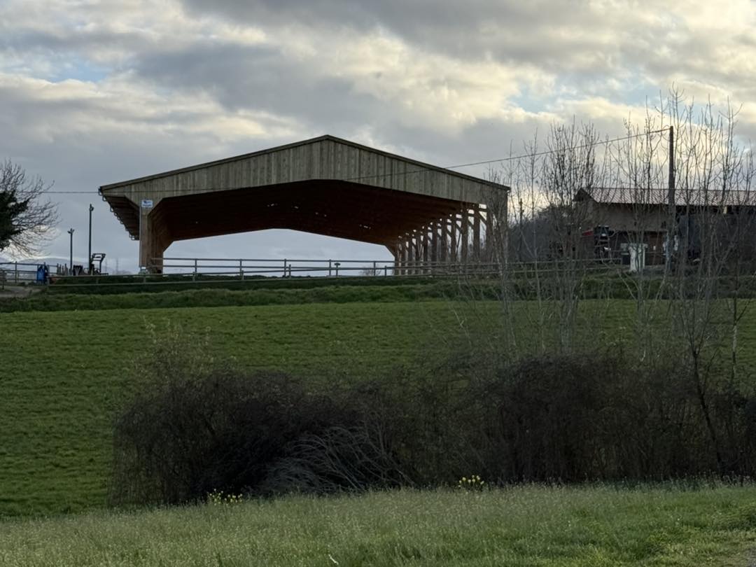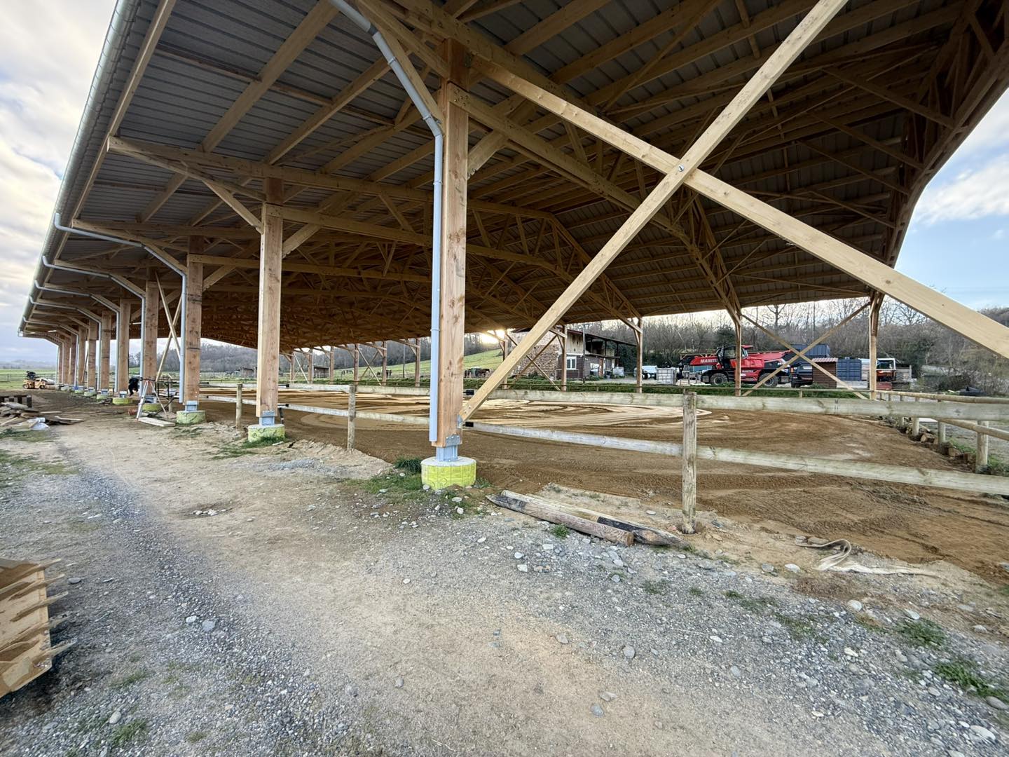 ✔ Réalisations : Dans un cadre exceptionnel face aux sommets enneigés des Pyrénées, nous avons réalisé la pose d’un manège équestre en structure bois.